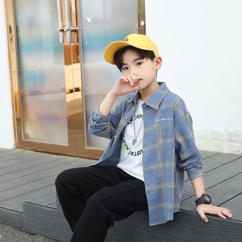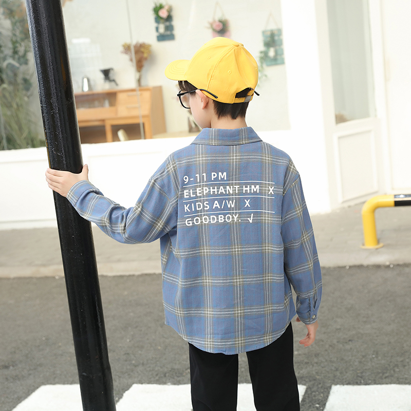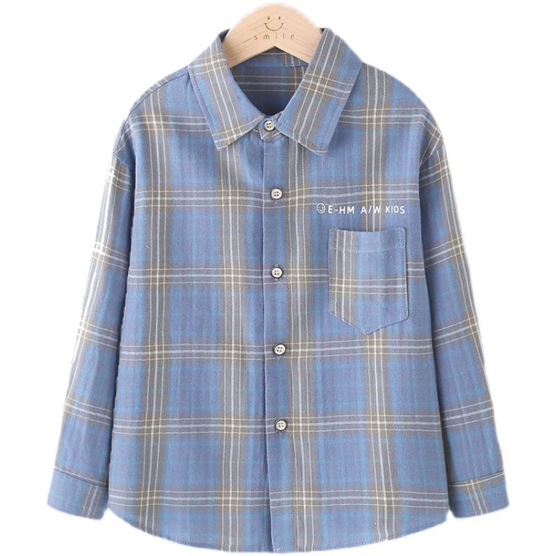 Bala blouse new children's long-sleeved shirt classic plaid cotton lapel big boy spring and autumn shirt