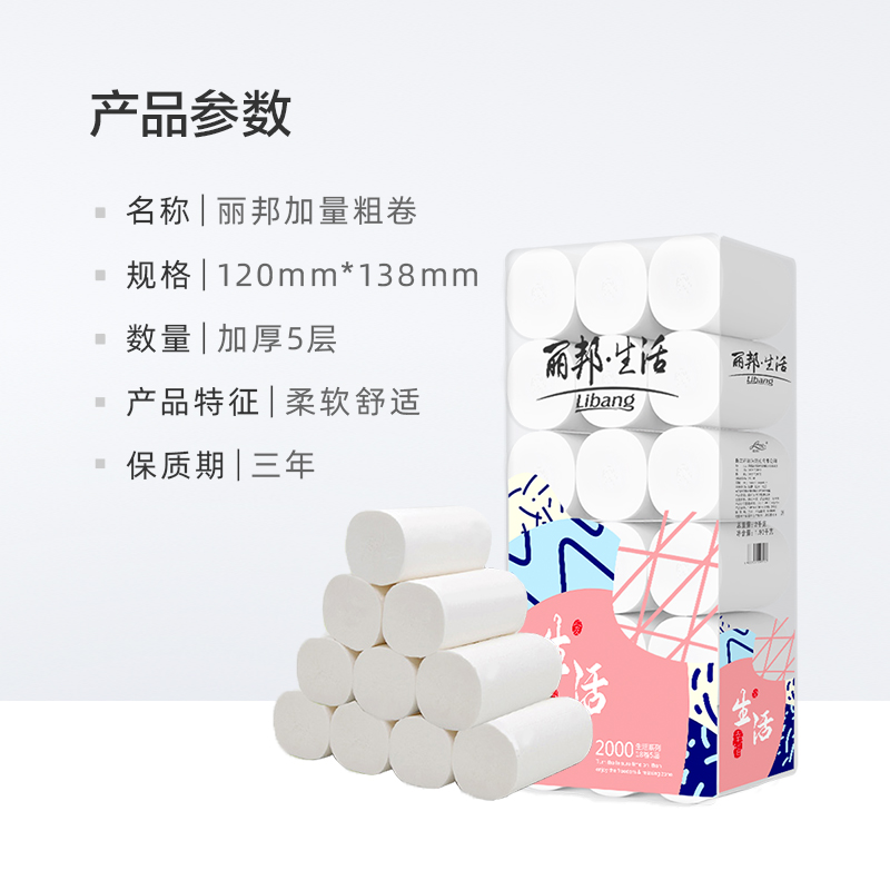 Libang 5 layers of paper roll 18 roll 2000 g household paper pulp paper paper towel baby can use toilet paper toilet paper