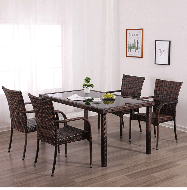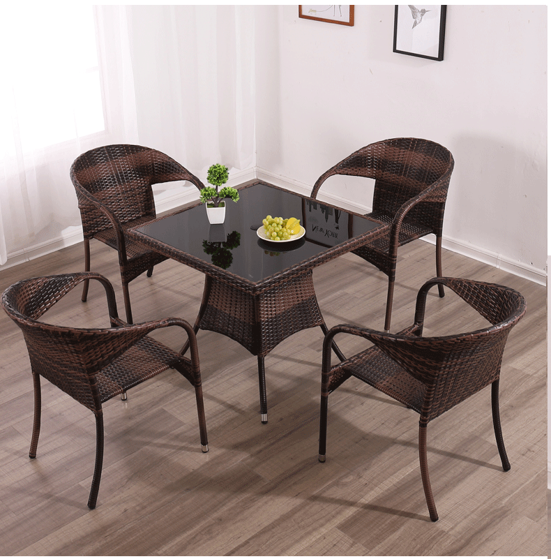 Rattan table and chair suit combination of three sets of outdoor casual table and chairs suit home balcony tea table open iron art table and chairs