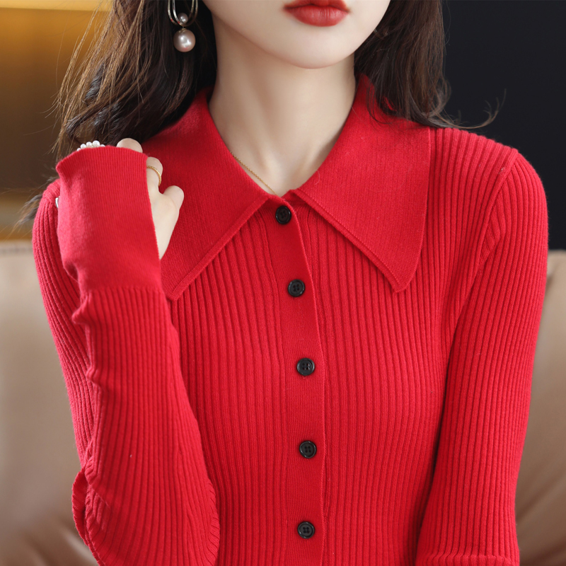 New Volksworter in Autumn and Winter, New Flip V-collar Wool Sweater Fitting Non-Cashmere Base Cover