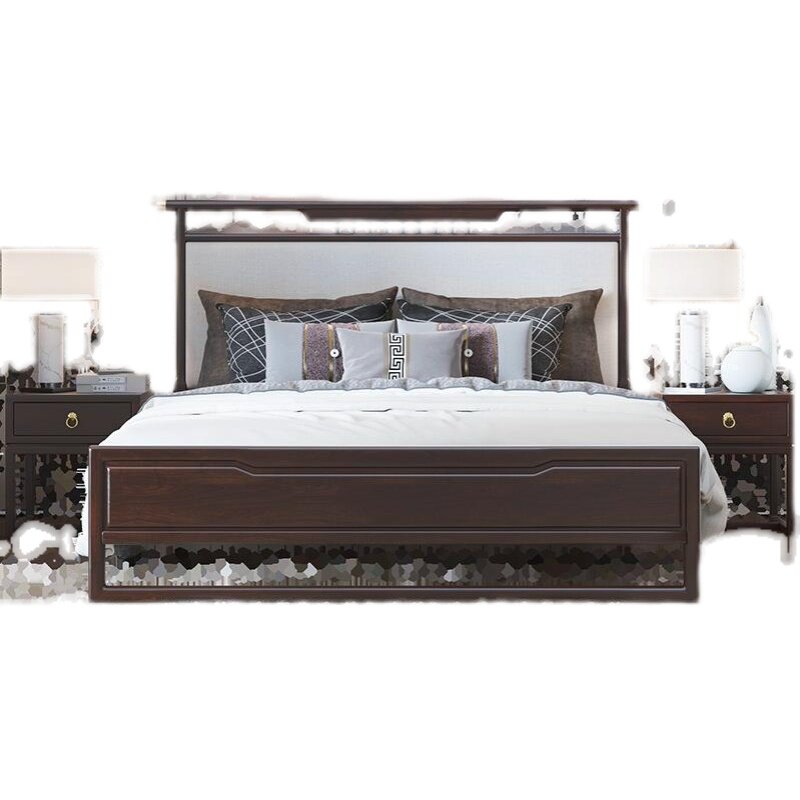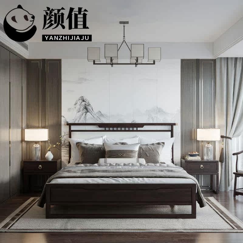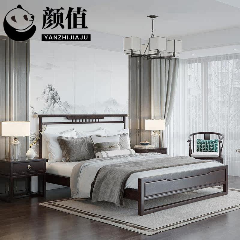 New Chinese-style solid wood bed ash double bed 1 8 meters 1 5 modern minimalist light luxury master bedroom wedding bed B&B bed
