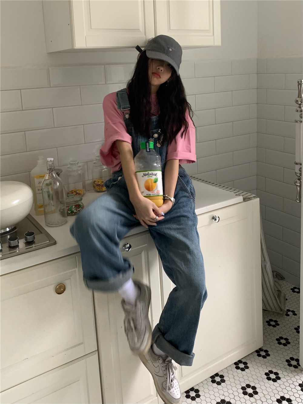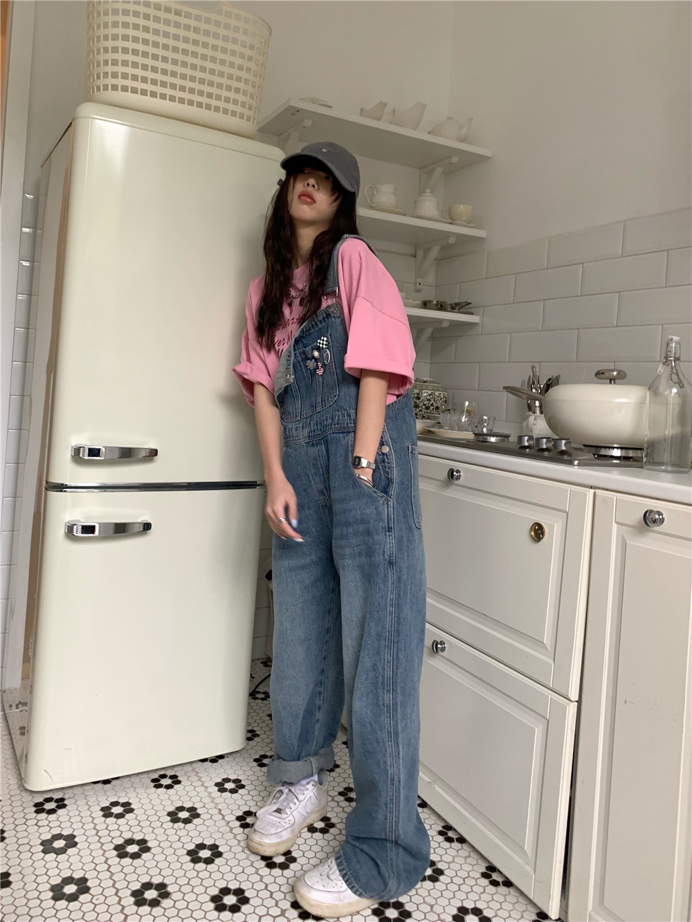 Wilderness Home 2022 Summer New Academy Port Wind Badges Cowboy Cuddling Pants Straight Barrel Casual Loose Broadlegged Pants Women