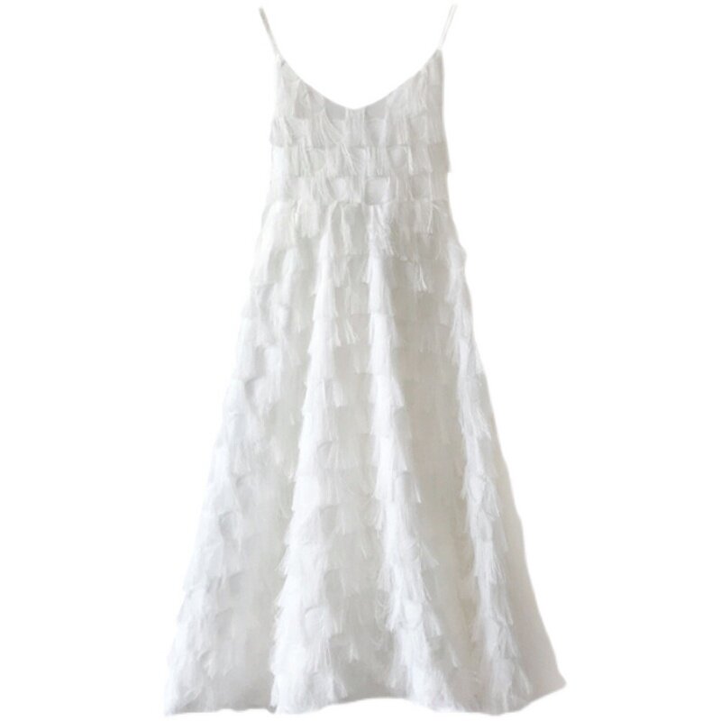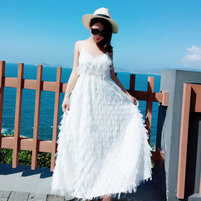 Pro Daughter Dress Mother Woman Beach Skirt Seaside Ocean Dress Sanya Ultra Fairy Dew Back Long Skirt Girl White Feather Pendant With Skirt