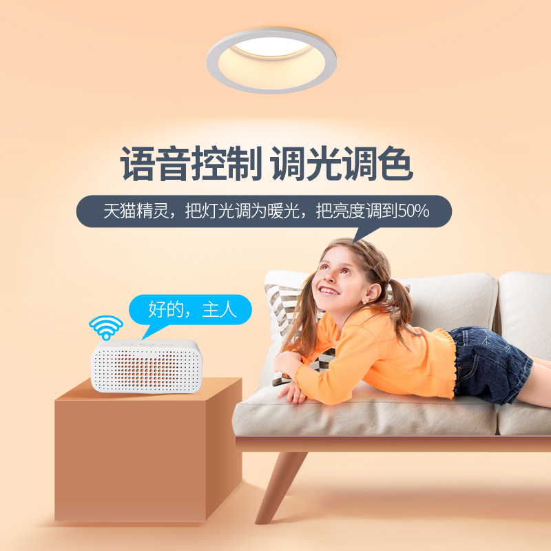 Smart dimming toning cylinder light led embedded home living room No main anti-glare spotlight small love sky cat elf