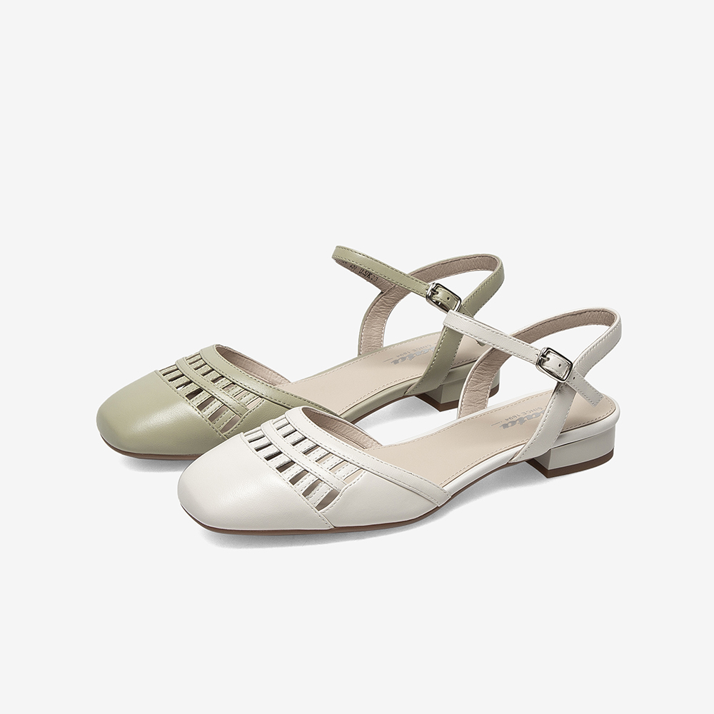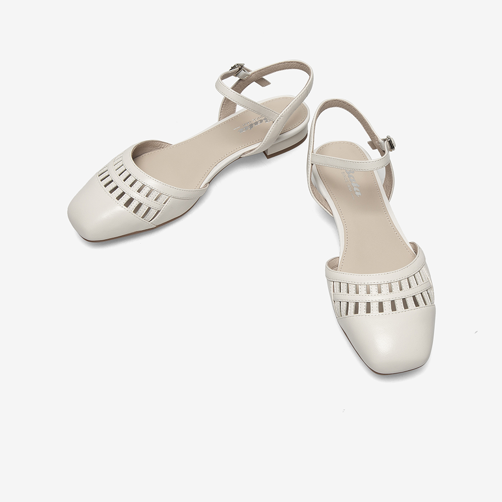 Bata Baotou Sandals Women's 2022 Summer Shopping Mall New Sheepskin Flat Soft Bottom Hollow Mary Jane Shoes AKN36BH2