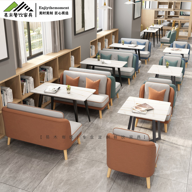 Cafe Cafe Table & Chair Combined Milk Tea Shop Dessert Solid Wood Sales Building Reception Negotiation Card Sofa