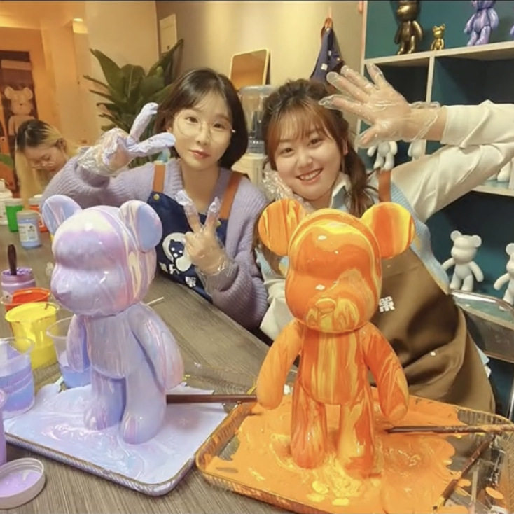 Net Red Fluid Violent Bear Child Handmade DIY Violent Bear White Germ graffiti Plaster Doll Color Ploy Toy
