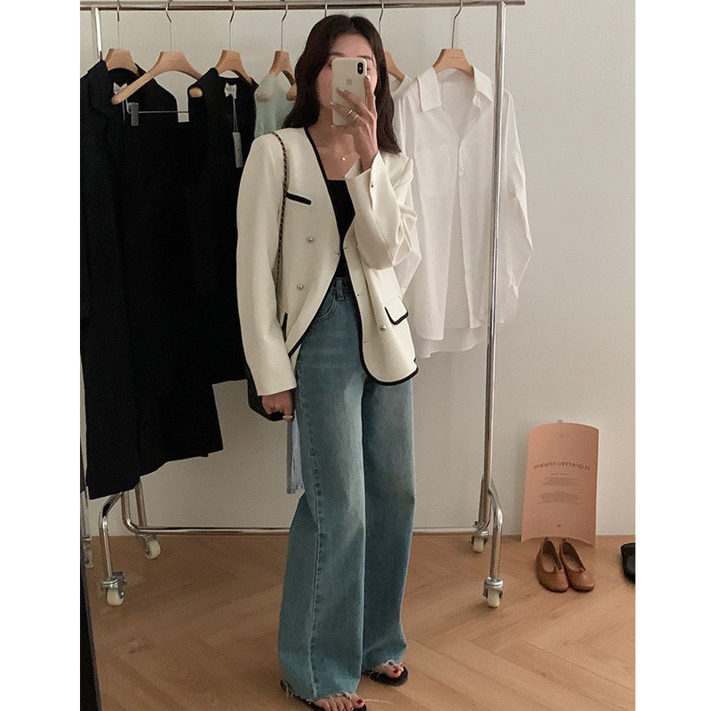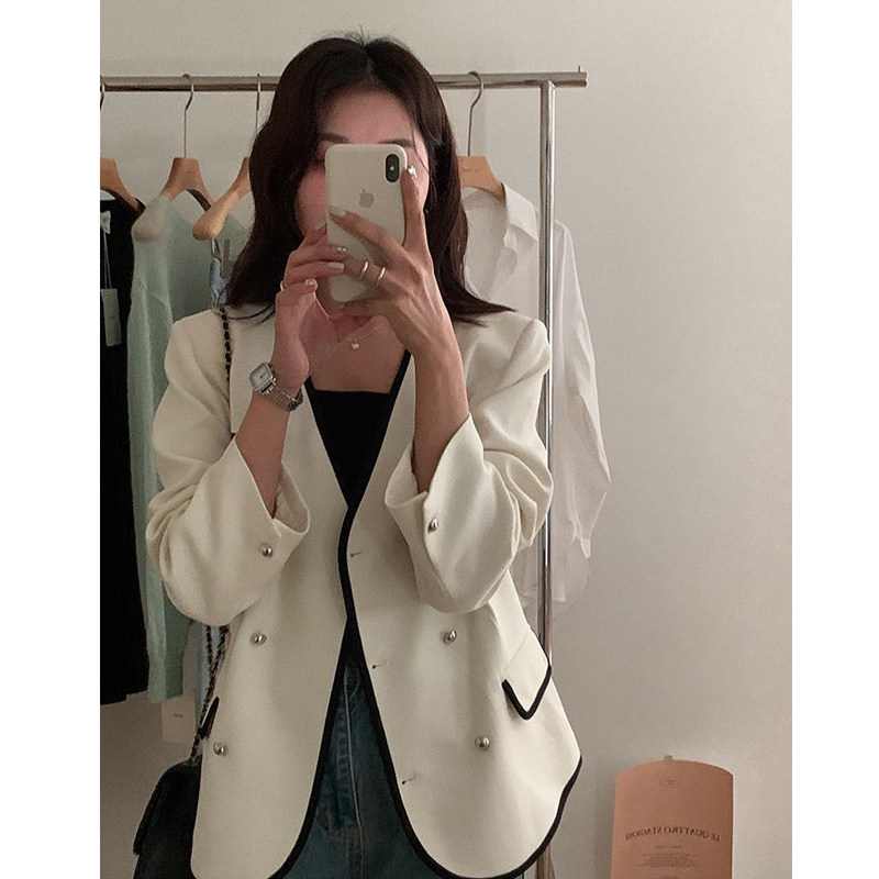High-end short casual suit jacket female small man 2022 autumn new niche design sense suit small fragrance style