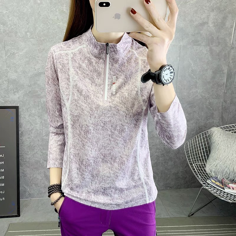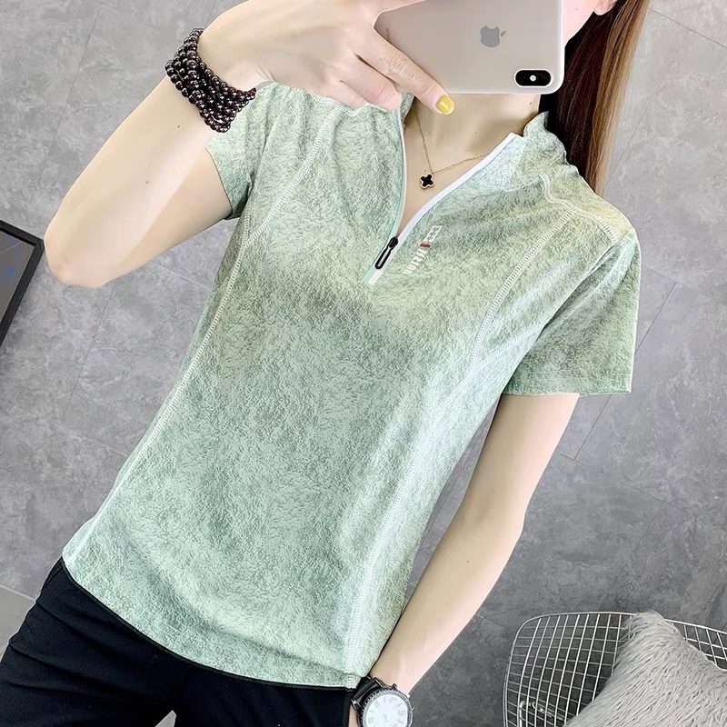 Speed Jersey T-shirt Woman Sunscreen Slim Collar Short Sleeves Slim breathable outdoor sport Running half-sleeve Climbing Quick Jersey T-shirt
