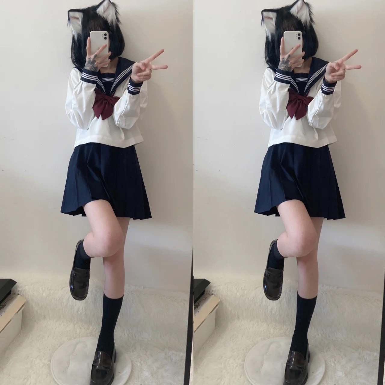 White Three Benn Long sleeves Skirt Red Plume Root Knot Four Pieces White Three Ben Long Sleeves Red Plume Root Knot Four Pieces Small Things Black Collar Three Ben Long Sleeves Black Short Skirt Black Plume Root Knot Four Pieces of Small Things