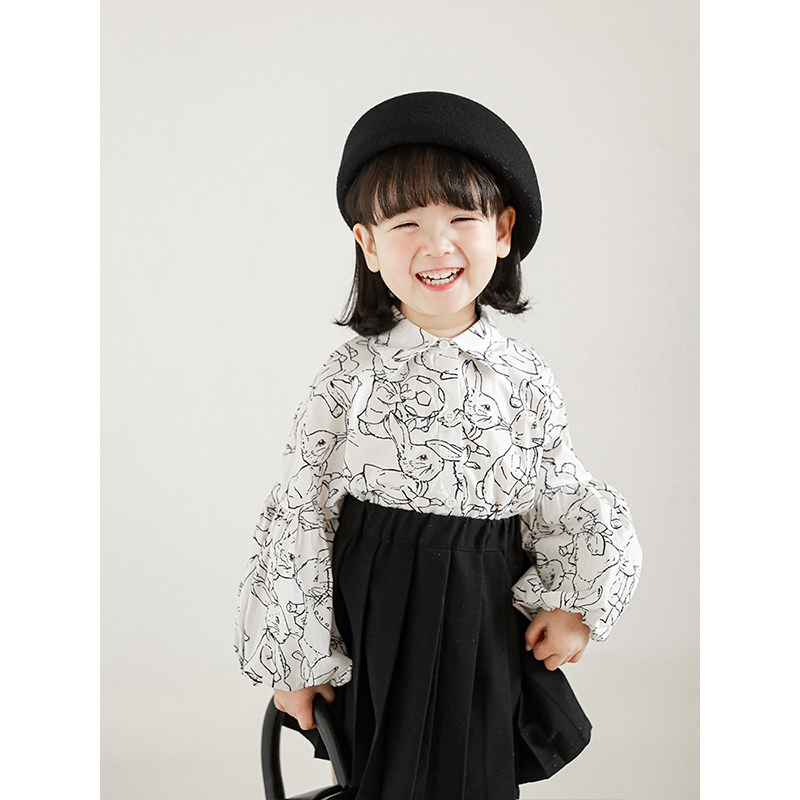 Young Yo-yo Clothing Cartoon Shirts Children Loose Shoulders Bubble Sleeveless Girls Spring 100 Hitch Peter Rabbit Printed Blouse