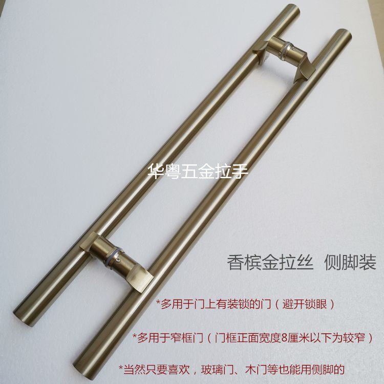 Glass door handle champagne gold wire aluminum alloy frame handle round pipe stainless steel double open wooden door handrail 1 5 long