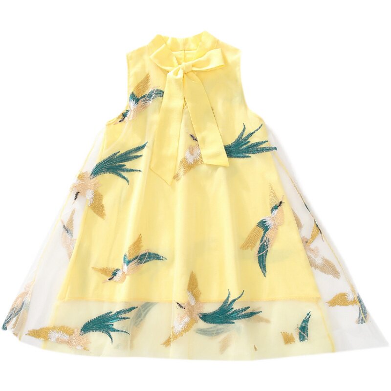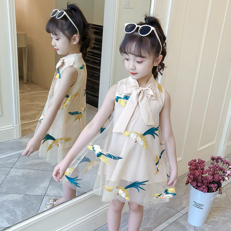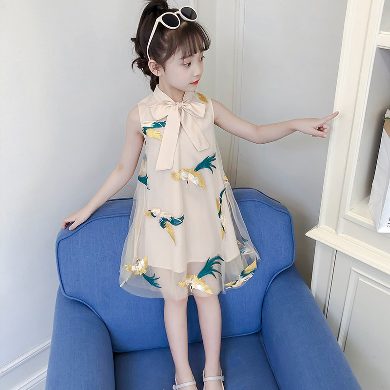 Girl Sleeveless Vest Ocean Dress 2022 New Summer Dress CUHK Child Kit Girl Net Yarn Qipao Princess Dress