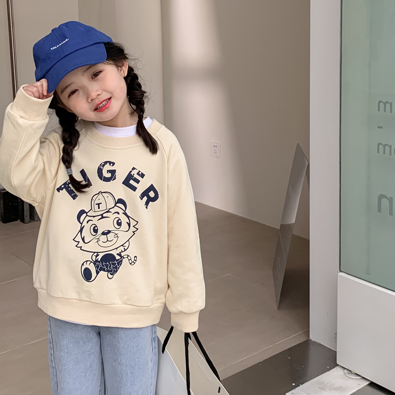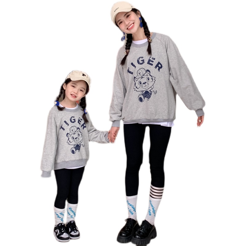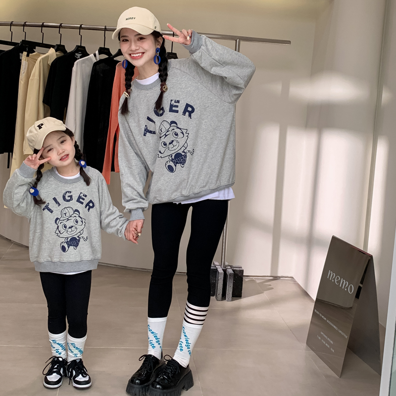 Pro-daughter dress female foreign palate for spring and autumn long sleeves loose tiger printed boy girl mother and son with blouse cotton