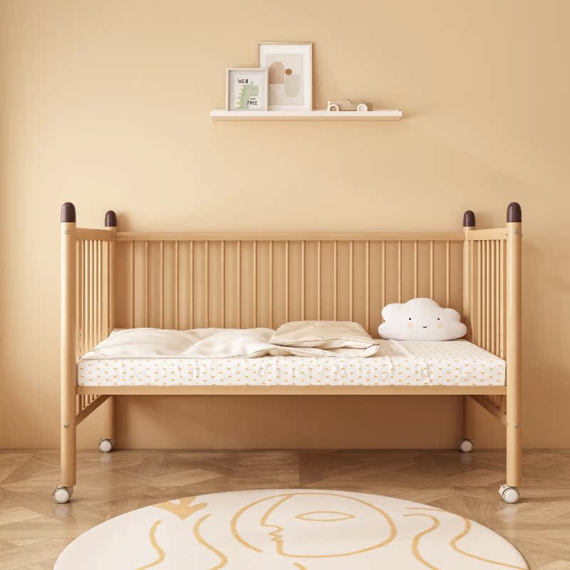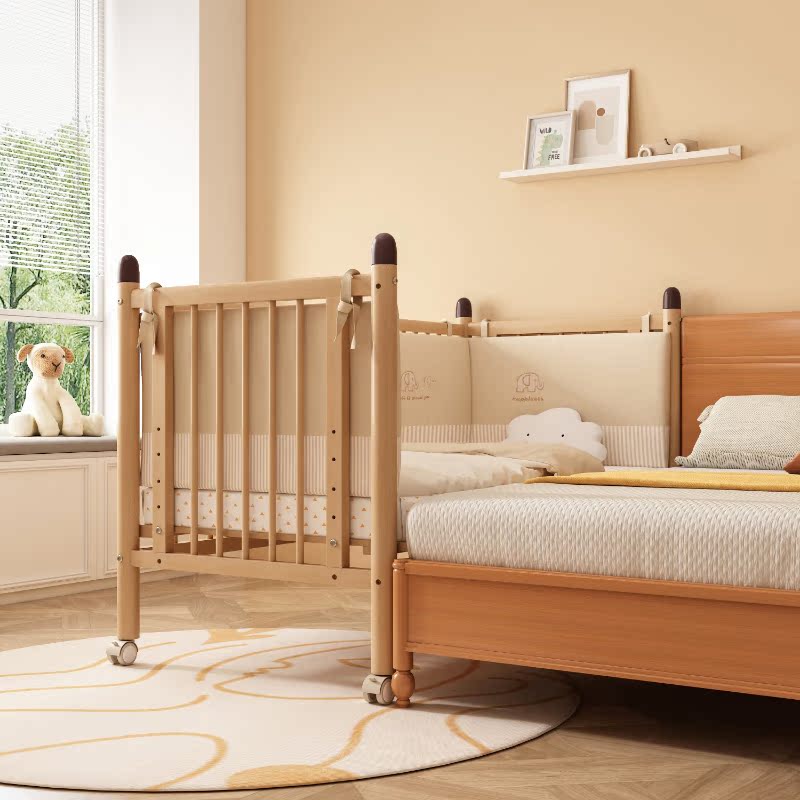 Beech crib baby bed removable children's bed stitching bedside adjustable height newborn bb bed with rollers