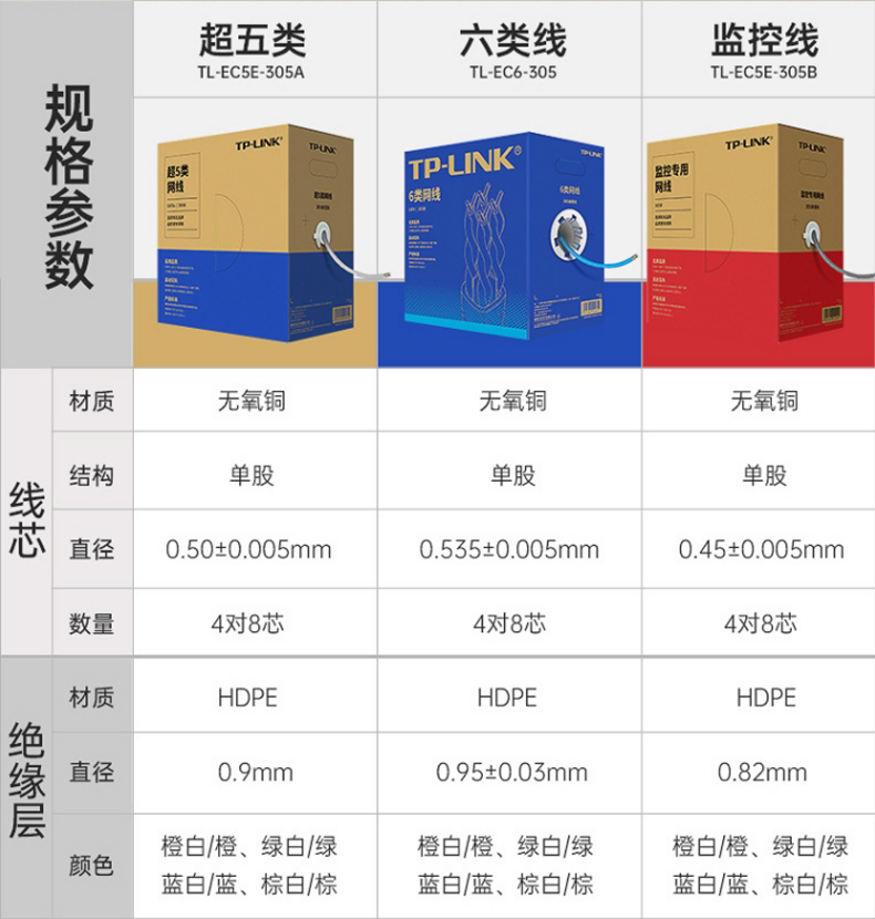 Category 5e 0.45 Network Cable TL-EC5e-305B Box Category 0.5 Network Cable TL-EC5e-305A Box Category 6 Network Cable TL-EC6-305