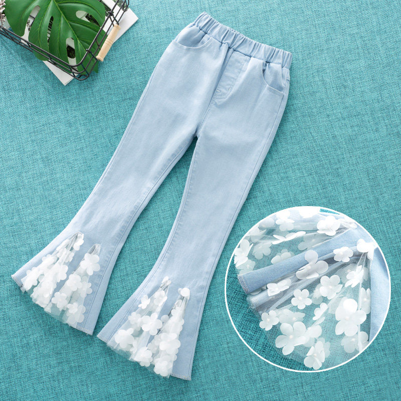 Light blue pine cone tassel (summer thin # cropped pants) light blue cherry (summer thin # cropped pants) light blue lace petals (summer thin # cropped pants) new light blue love