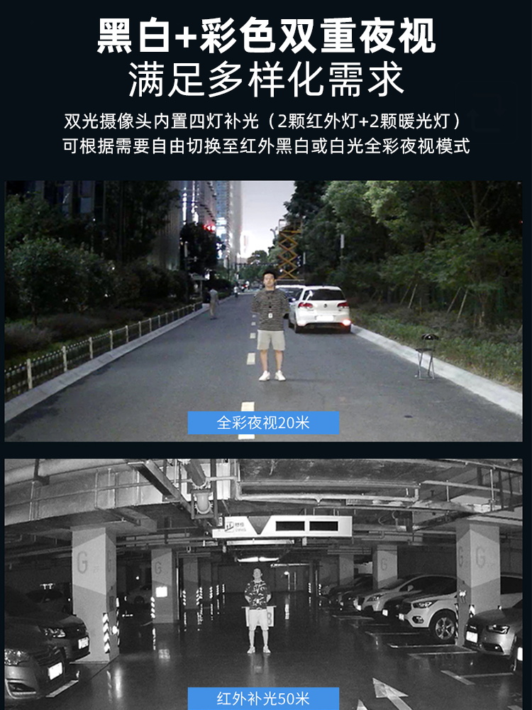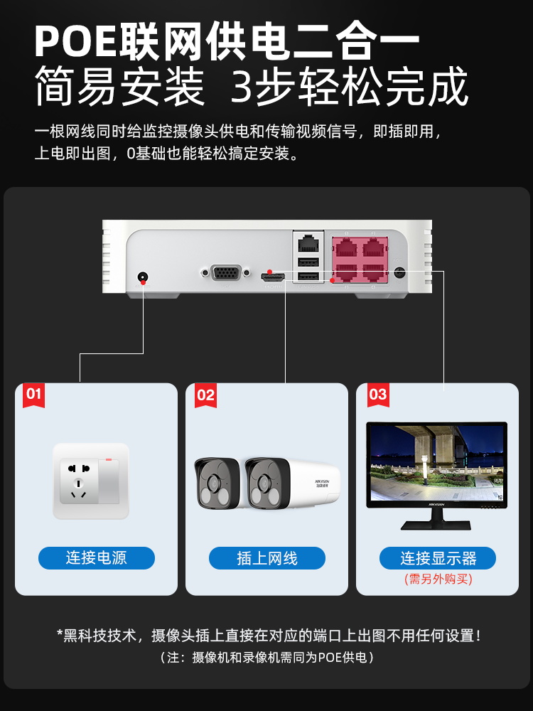 Full-color night vision POE network cable power supply (single camera) Full-color night vision human-vehicle detection kit 1 channel (1 camera 1 set 4-channel video recorder) Full-color night vision human-vehicle detection kit