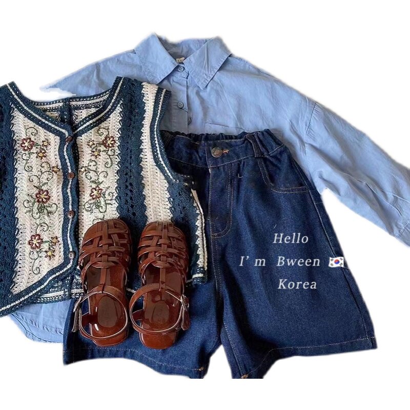 Girl Knit Waistcoat Korea Children's Clothing 2022 Spring Foreign Pie Children Retro Embroidered Korean Version Casual Jersey Vest