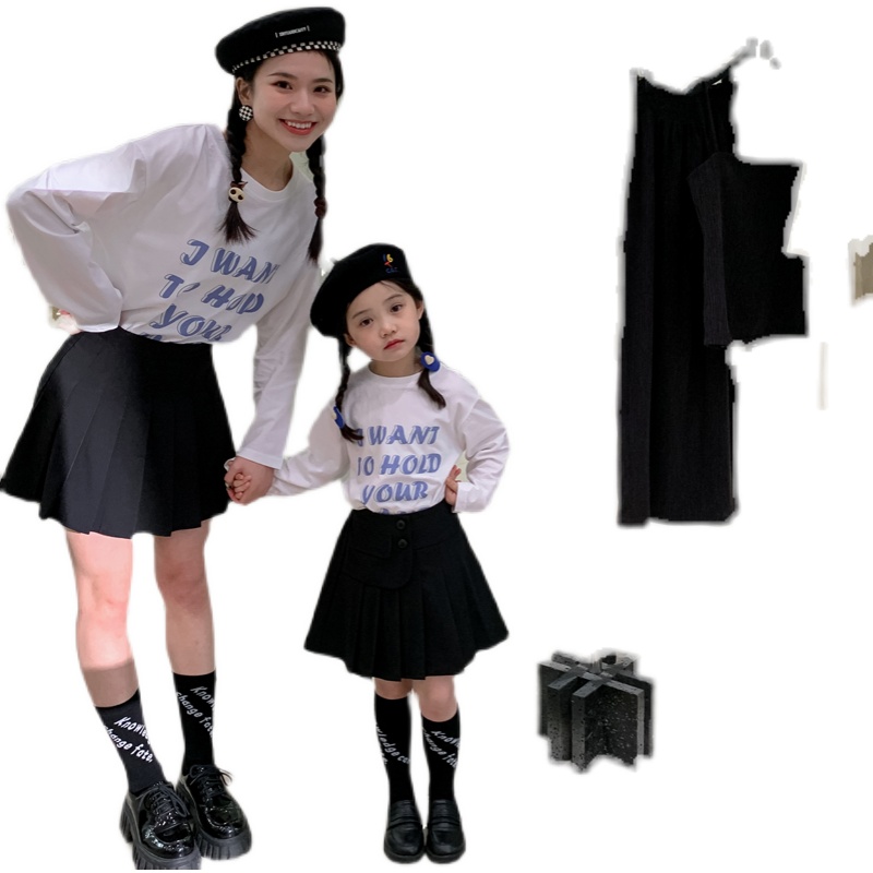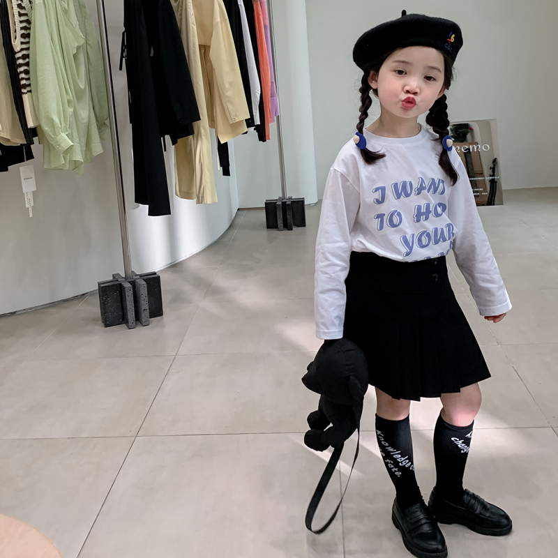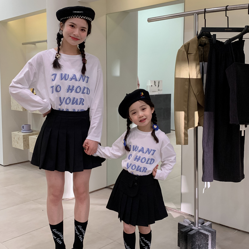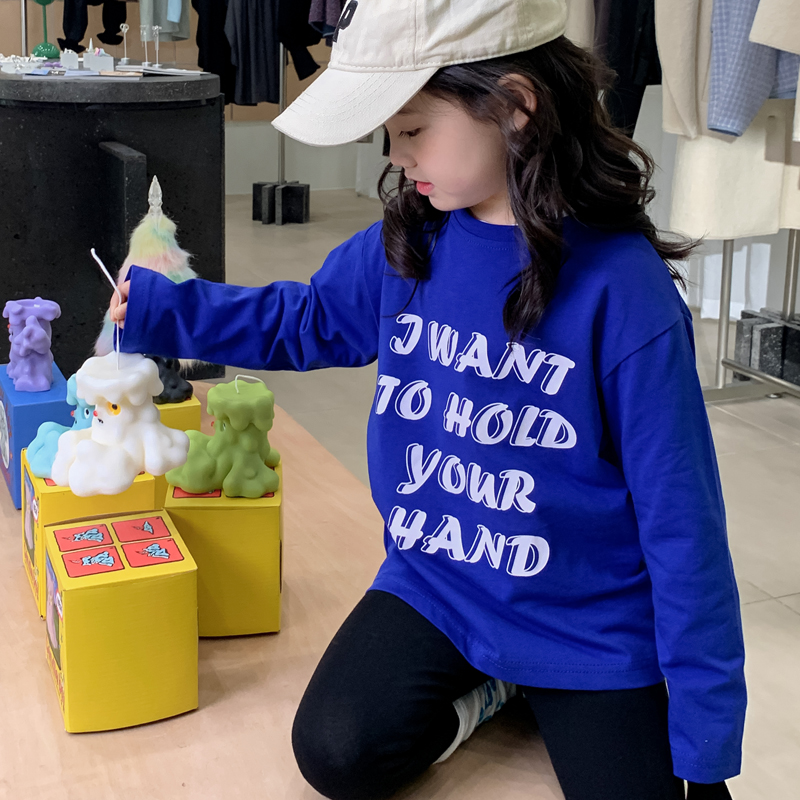 Pro-daughter dress female foreign Piers Long sleeves T-shirt Spring and autumn letter boy girl Klein Blue Mother's female dress blouse