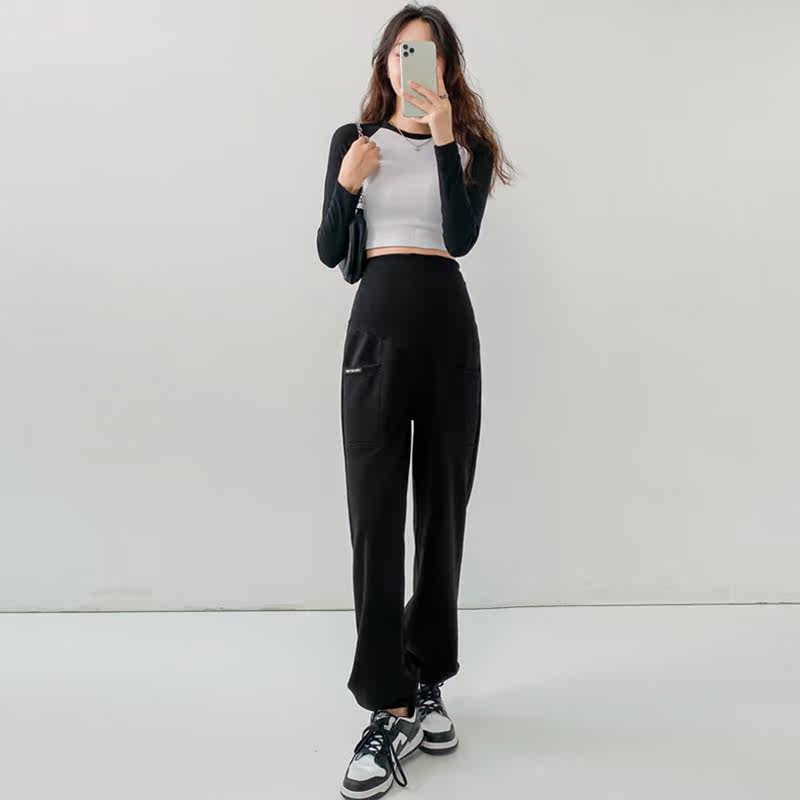 Pregnant Woman Pants Casual Thick Cotton Pants Woman Large Size Code Spring Fall Outside Wearing Loose Sports Pants Autumn Winter Style Long Pants Gestation Women Dress Spring Clothing