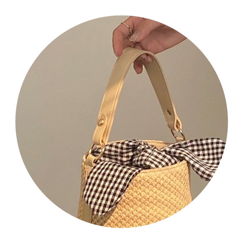 Summer summer straw bowknot plaid bucket straw bag women 2022 new fashion all-match single shoulder Messenger