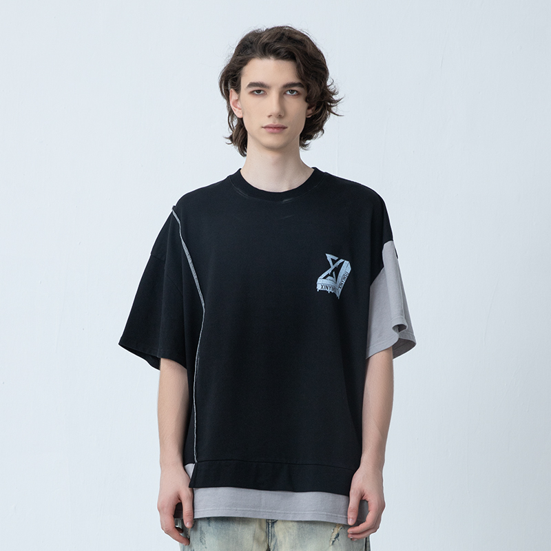 New factor tide brand 2022 new trend irregular stitching line segmentation LOGO printing short-sleeved T-shirt men