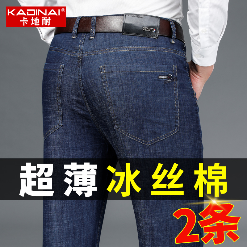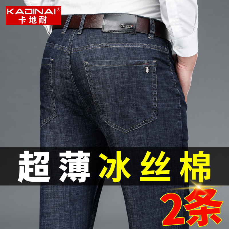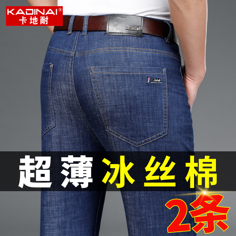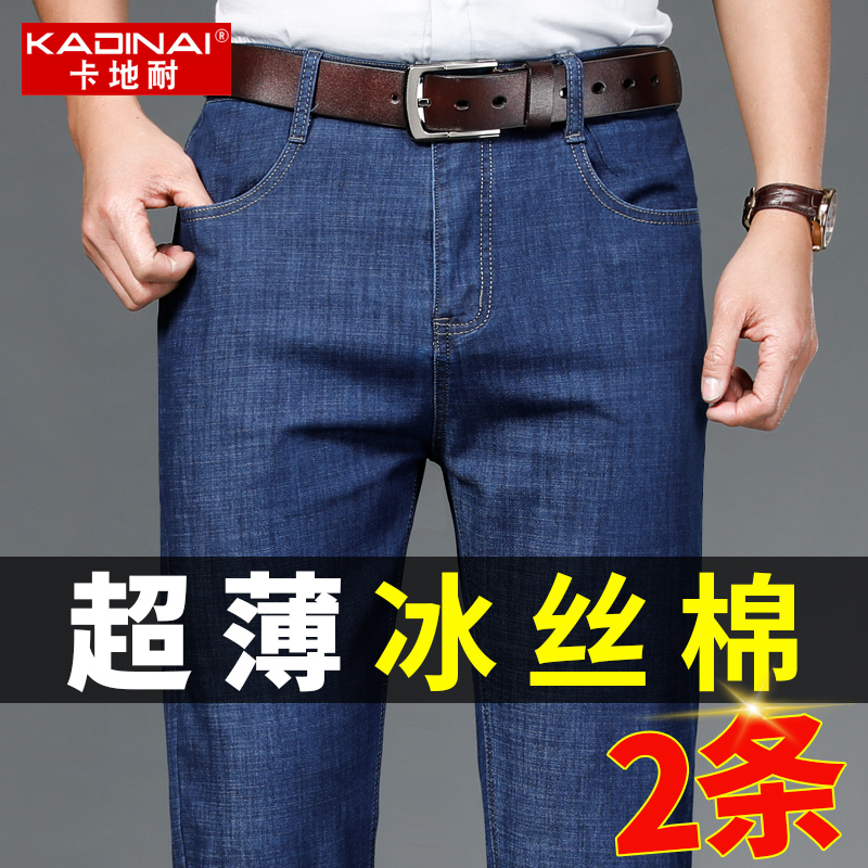 Men's jeans Summer thin Loose Straight Drum Ice Silk Men Pants Casual High Waist Elastic Middle-aged Dad Pants Man
