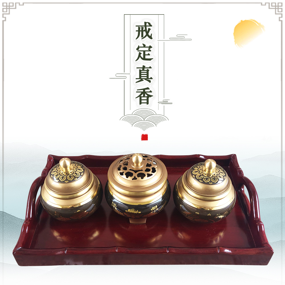 red tray chestnut color tray yellow incense burner yellow powder cup yellow three-piece red full chestnut color full set