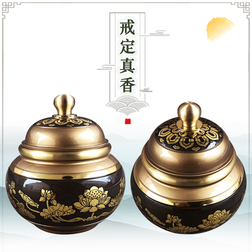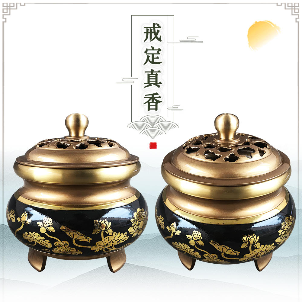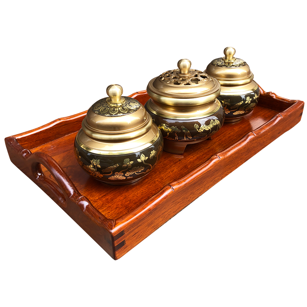 Buddhist supplies Buddha hall Buddha shrine ornaments Fahui solid wood tray incense plate tribute plate pure copper lotus incense burner powder cup