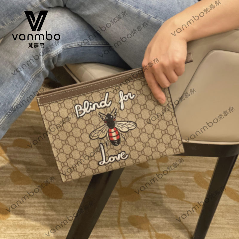 2022 new men's handbags embroidery individuality hand grab bag casual big card headlayer Bull Leather Hand Grip Tide Card Envelope bag