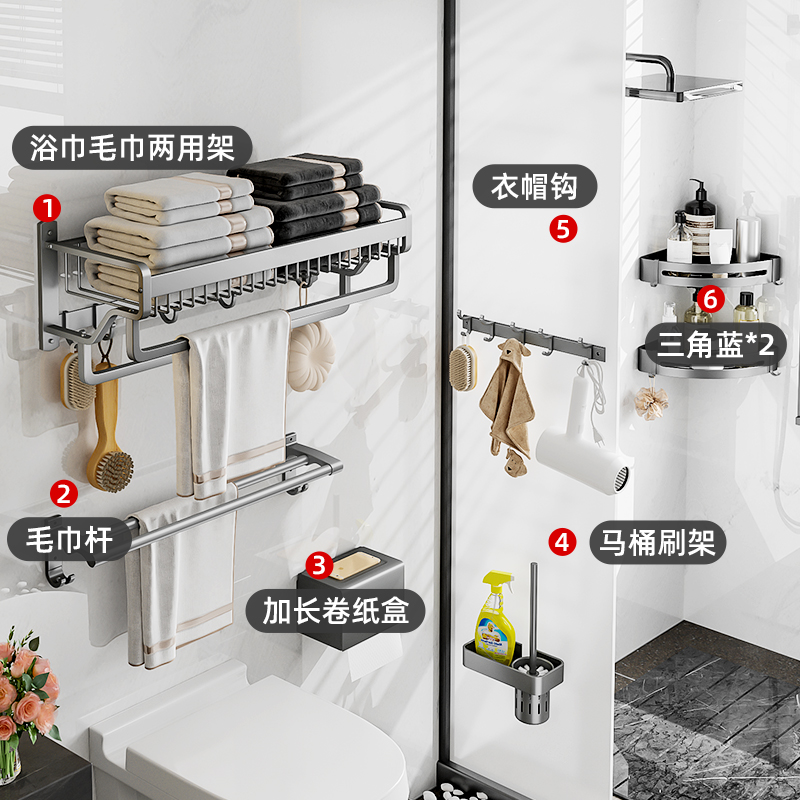 Gun gray bathroom towel with light luxury wind-free punch toilet wall hanging staffing toilet bathroom towel rack