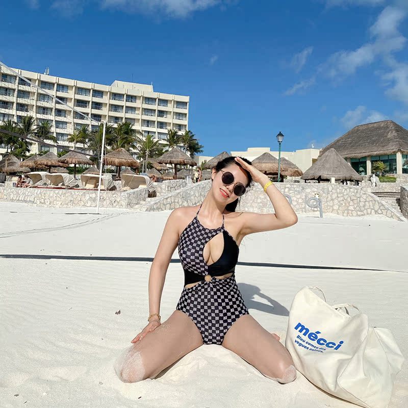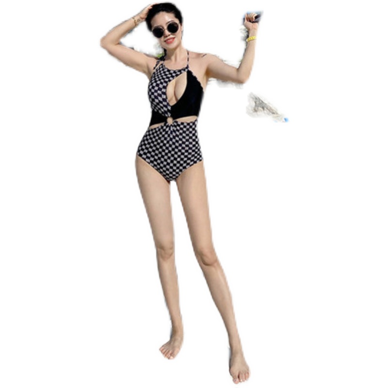 2022 new ins style swimsuit women cover the belly and show thin one-piece sexy pure hot spring plaid net red photo swimsuit