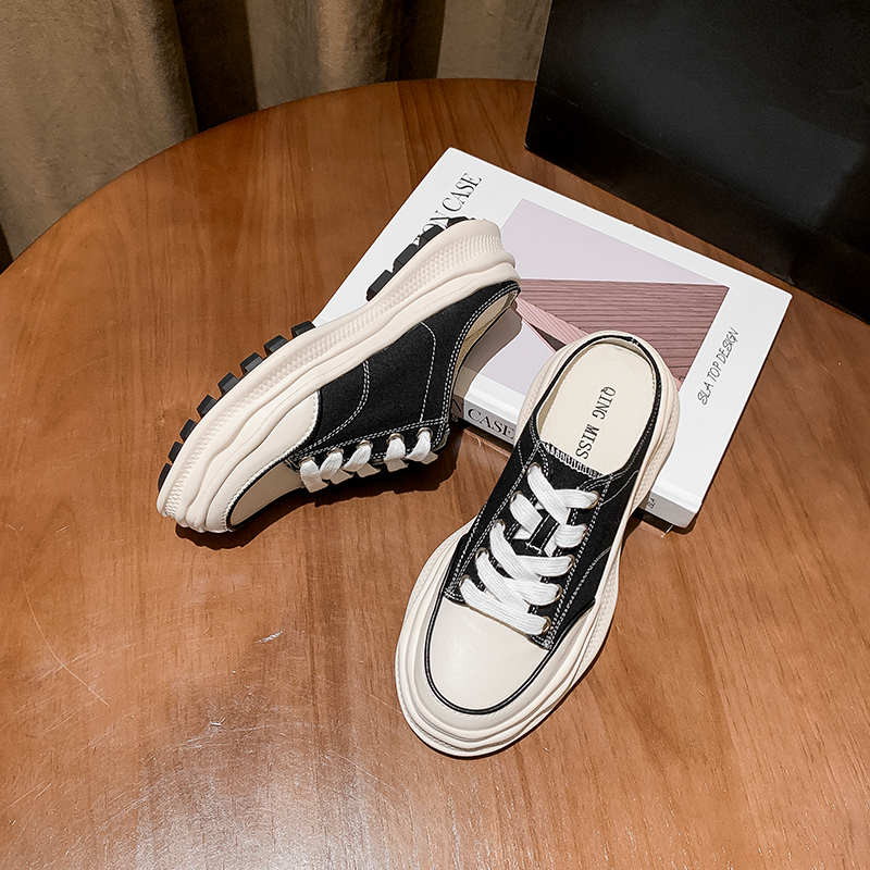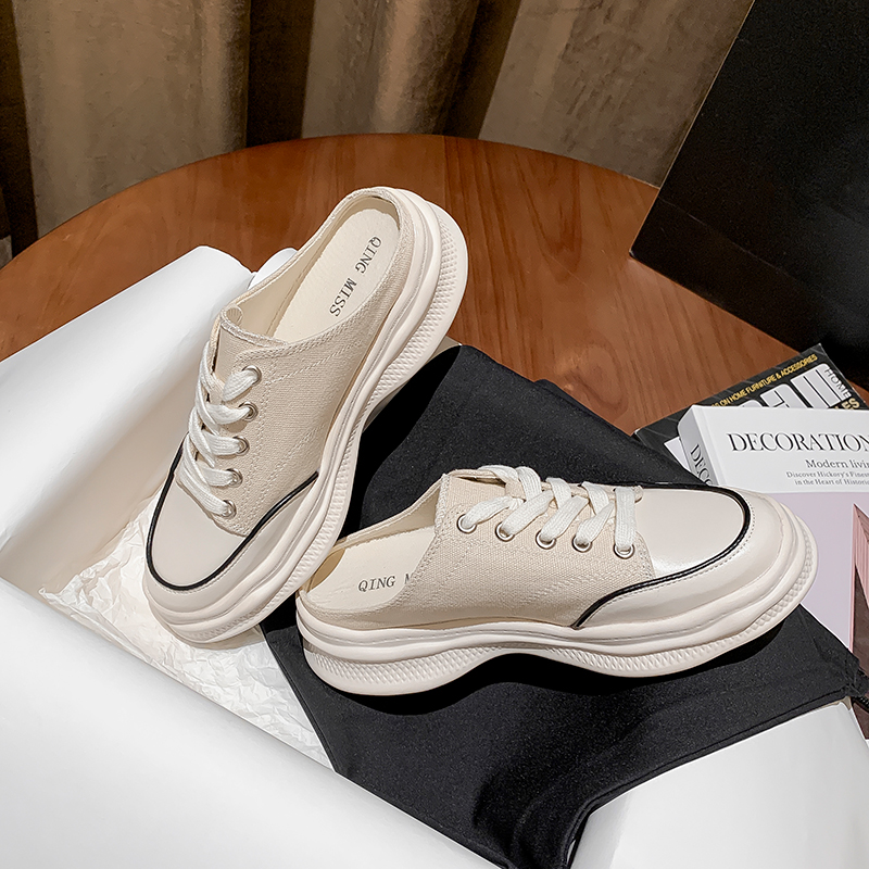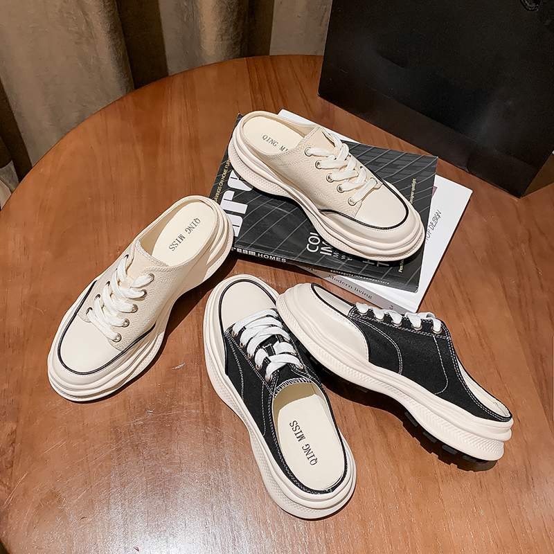 2022 new thick bottom sails shoes women heightening Baotou Half slippers Outer wear Ins ultra-fire breathable casual little white shoes