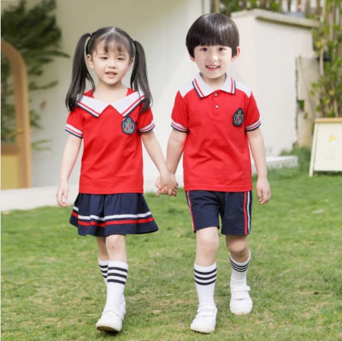 College Wind Kindergarten Garden clothes Short sleeves Two sets 12 3rd year Primary school Children's school uniforms Children's class Tide