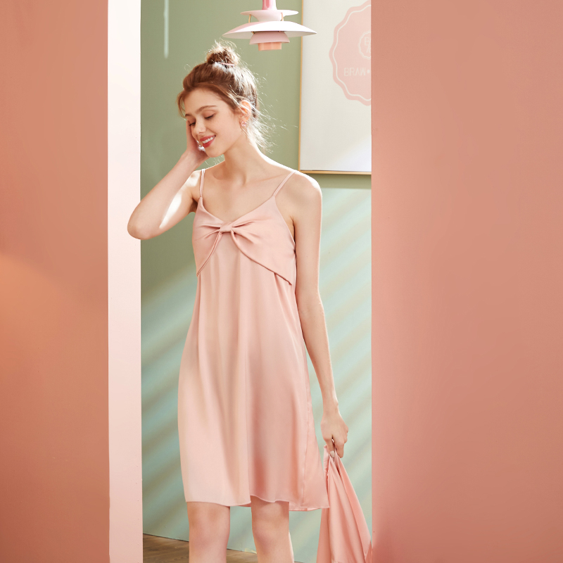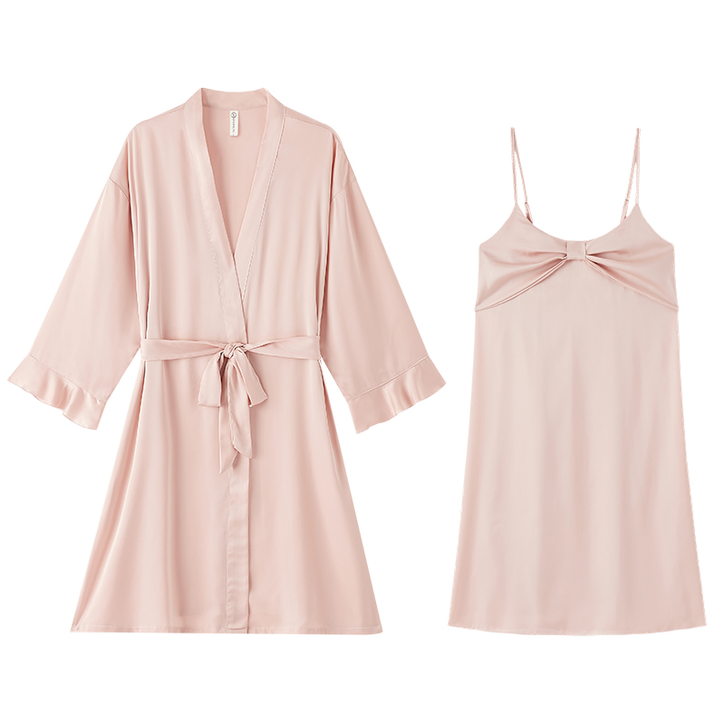 Sleeping Robe Women's Summer Harnesses Sleeping Clothes Ice Silk Spring Autumn Morning Gown Bathrobe Pure Desire Bridesmaids Can Outwear Spring And Autumn Two Sets