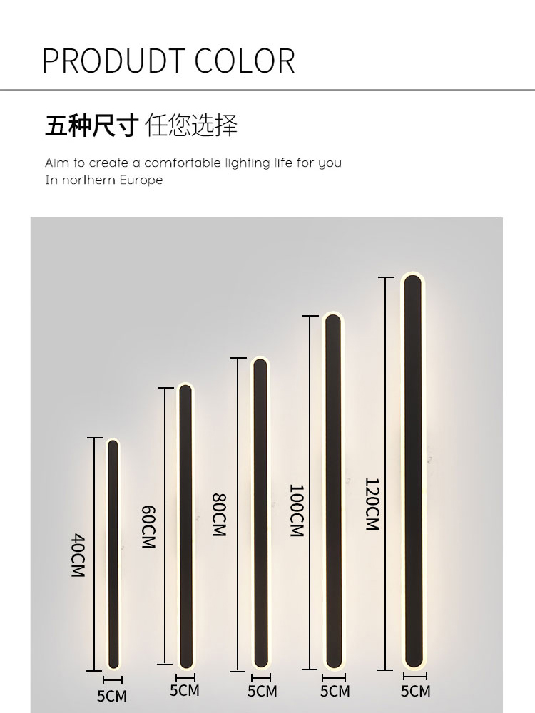 Minimalist line wall lamp long strip bedroom bedside lamp surface mounted staircase porch living room LED decorative background wall lamp