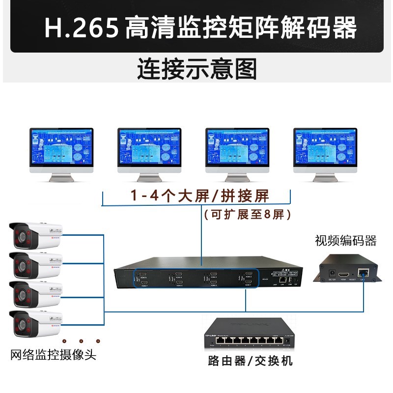 4-way HD monitoring decoder H 265 matrix compatible with Hakong Dahua 16 36 division 4 6 9 8 16 screen