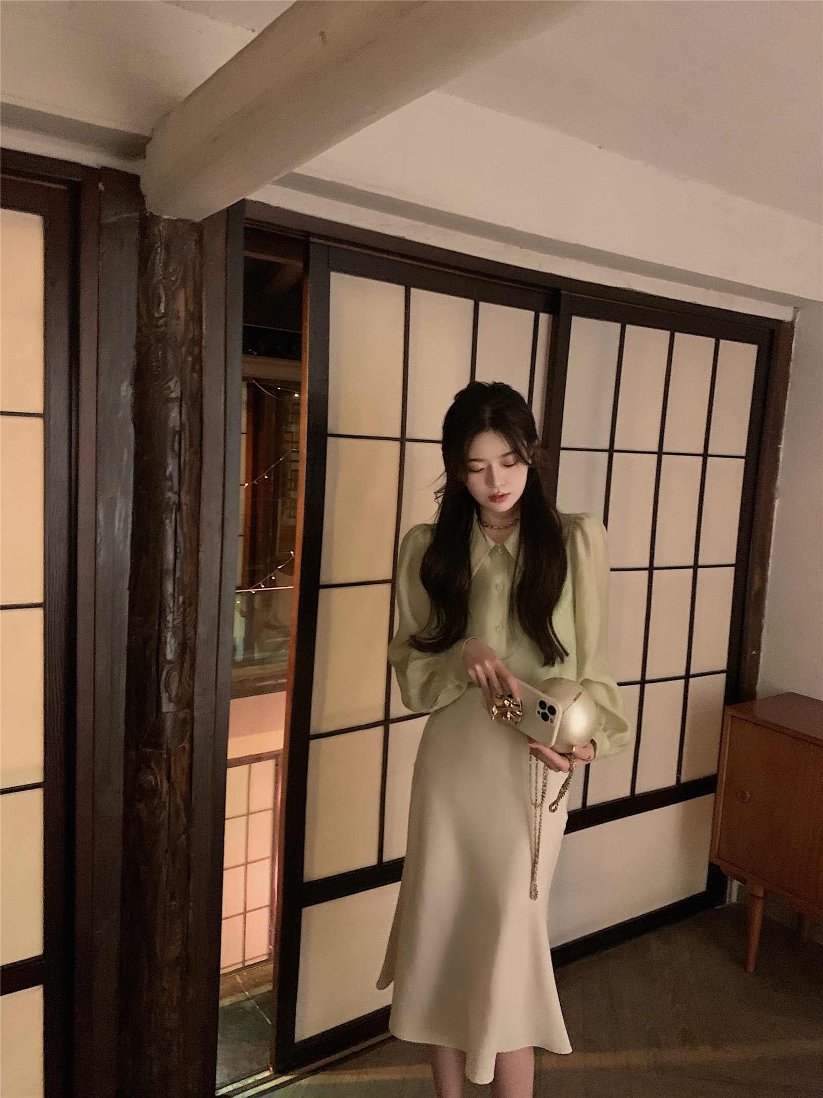 Style Temperament Tencel Blend Shirt Woman Spring Summer New Retro Bubble Cuff 100 lap long sleeves Don't give blouses blouse