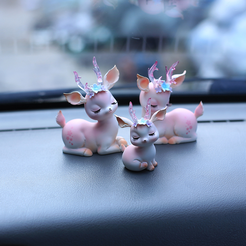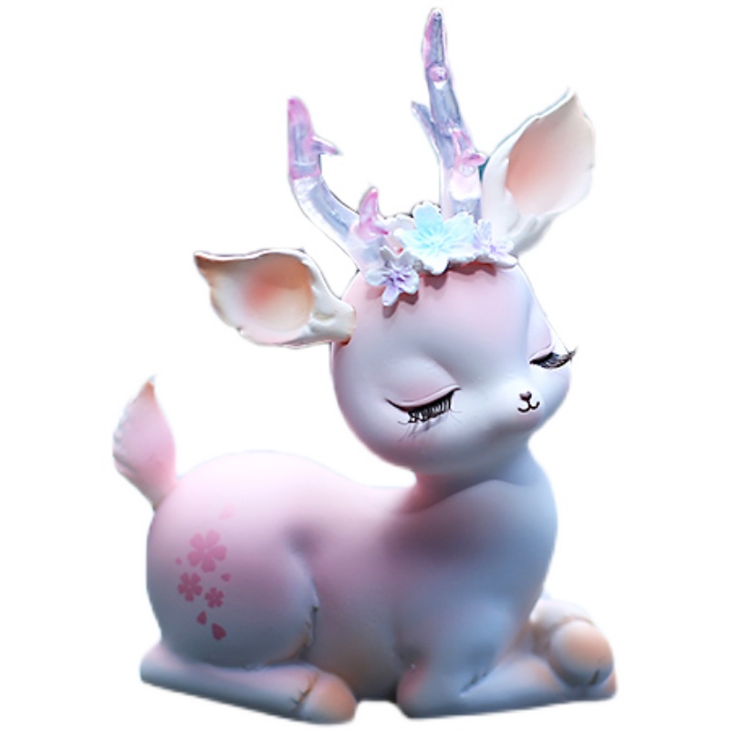 Two big deer, two small deer, two big deer, baby deer in sitting position, baby deer in lying position, baby deer in lying position, baby deer in lying position