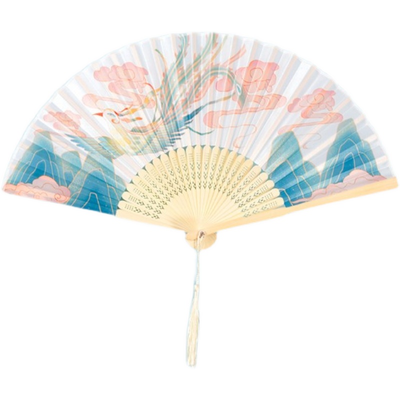 7 Inch Folding Fan China Wind Female Style Ancient Wind Flow Su Carry-on and Fairy Crane Hanfu Costume folded with small bamboo fan for a big smile fan
