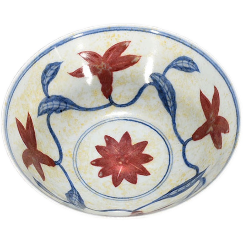 Bright green flower glaze in bright red autumn sunflower grain bowl