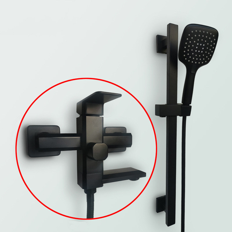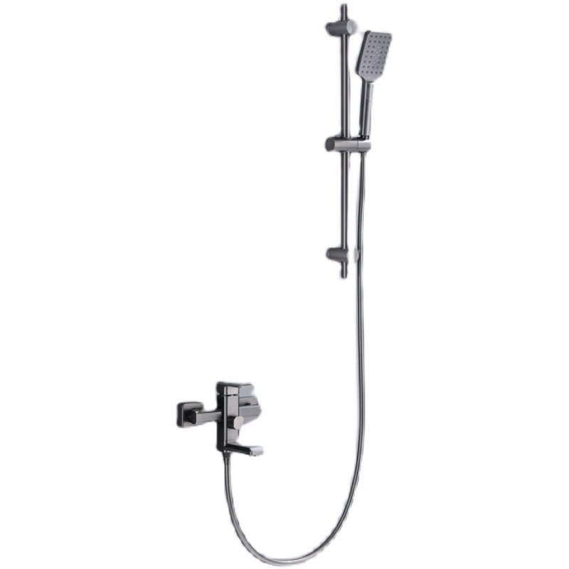 New German all-copper brushed gun gray bathroom bathtub faucet simple shower shower set hot and cold water booster