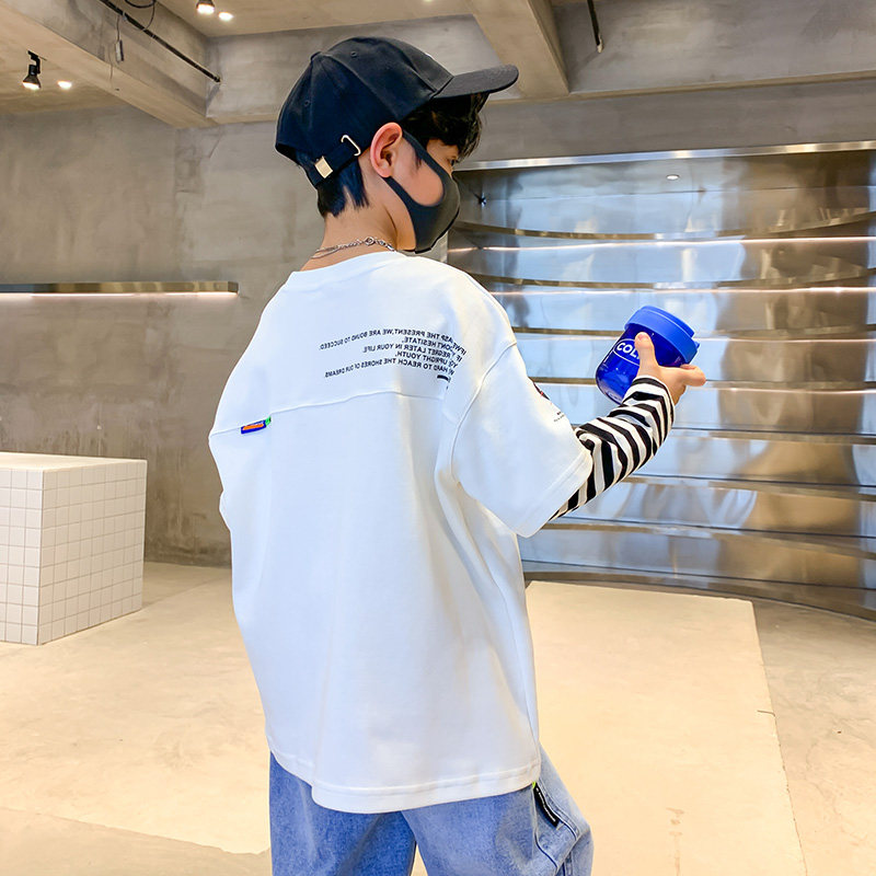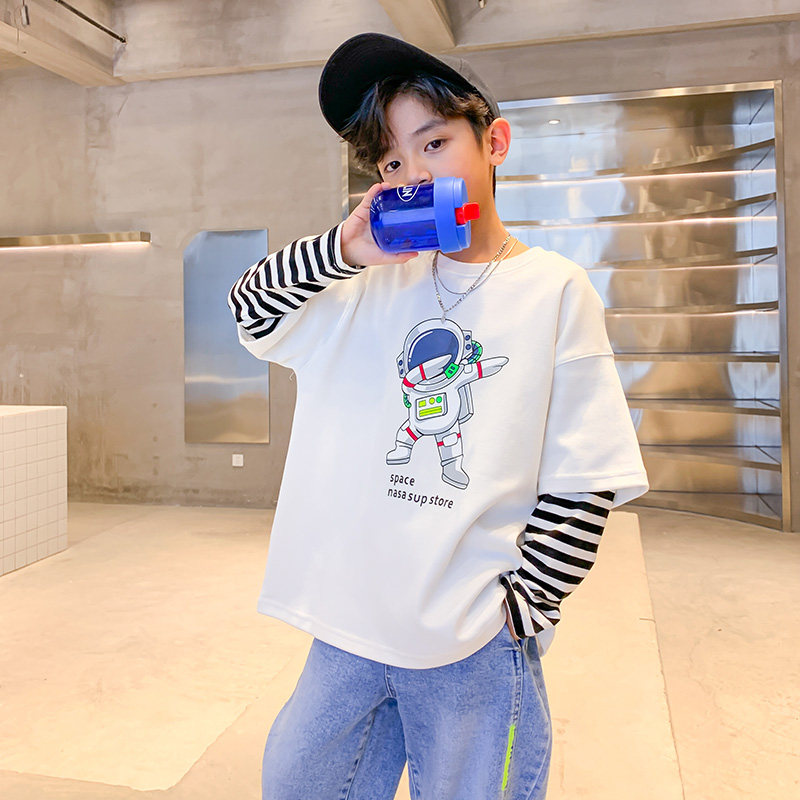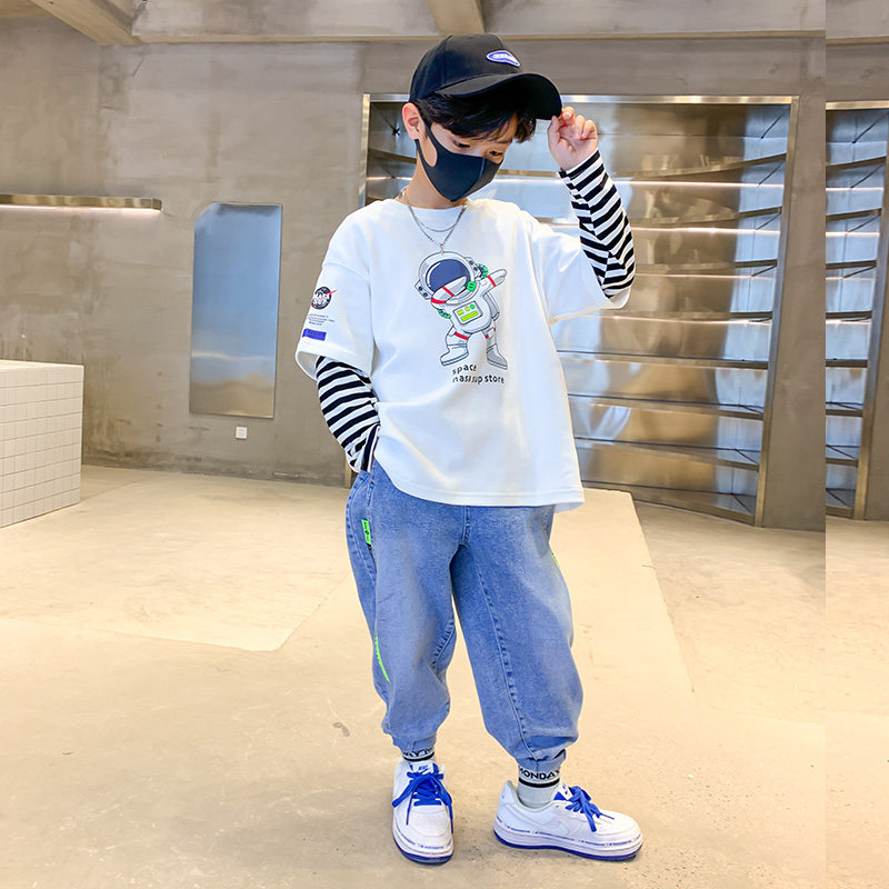 Boy's fake two pieces T-shirt Children's foreign pie Long sleeve T-shirt 2022 New spring and autumn season jacket CUHK Scout clothing