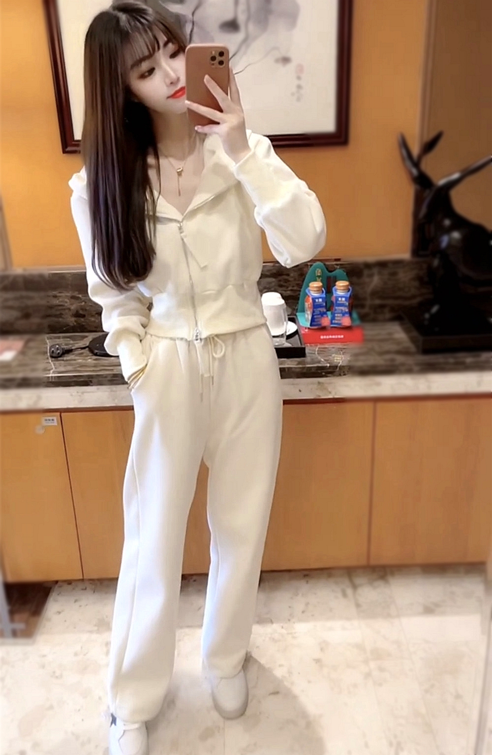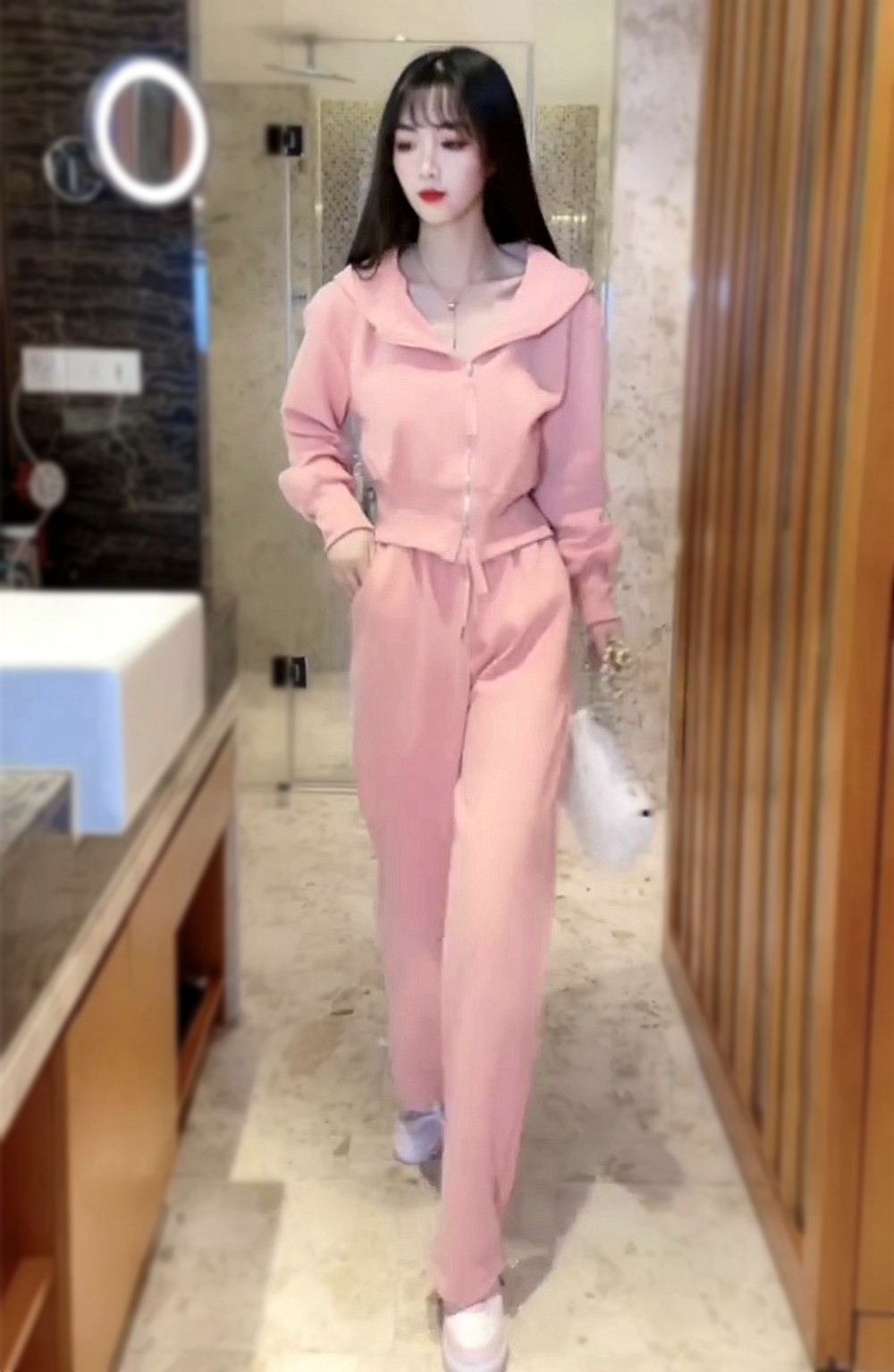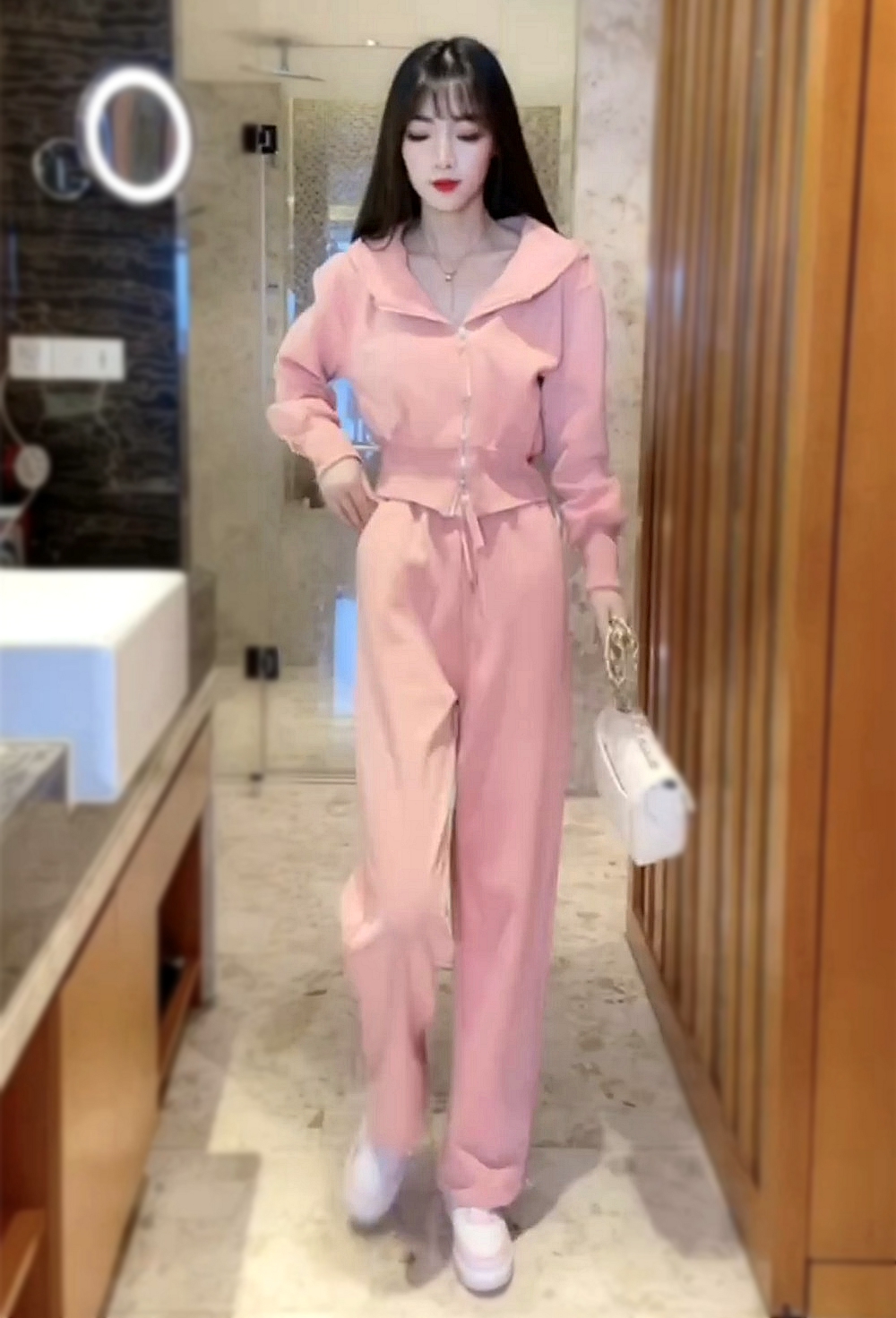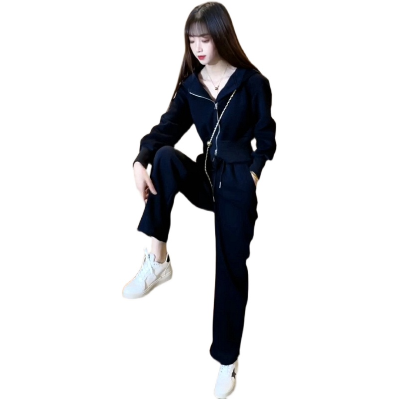 2022 spring and summer new fashion casual suit net red with cap laced jacket draw rope wide leg straight drum pants woman