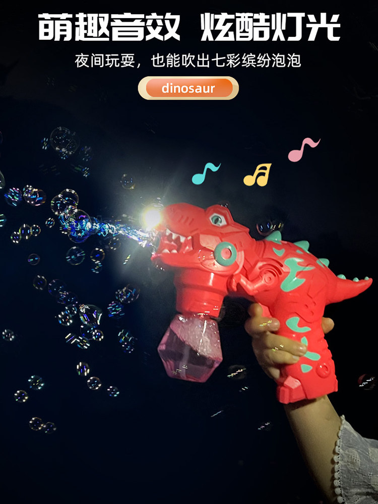Children's Dinosaur Bubble Blowing Machine Handheld Net Red Explosion Automatic Toy Stick Manual Liquid Electric Rainbow Bubble Gun