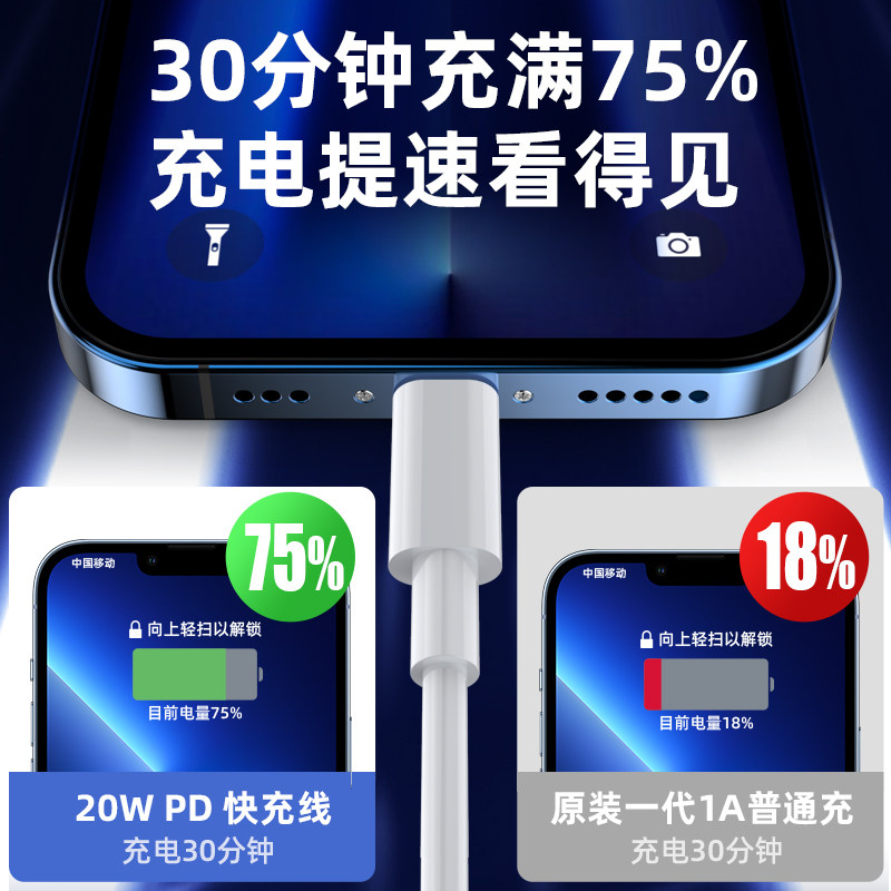 iPhone13 data cable 20W fast charge PD mobile phone 12 extended 11pro flash charge xr applicable Apple charging cable x device 3xsmax genuine 2m 7plus rush iPad set 8p