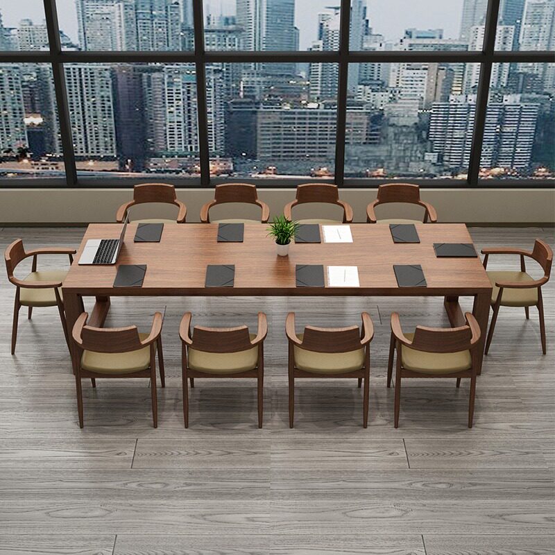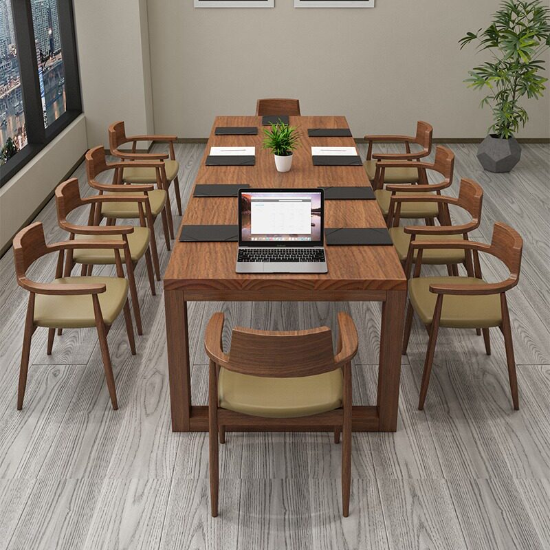 Solid wood conference table long table log large board long table office chair combination library walnut color reading table