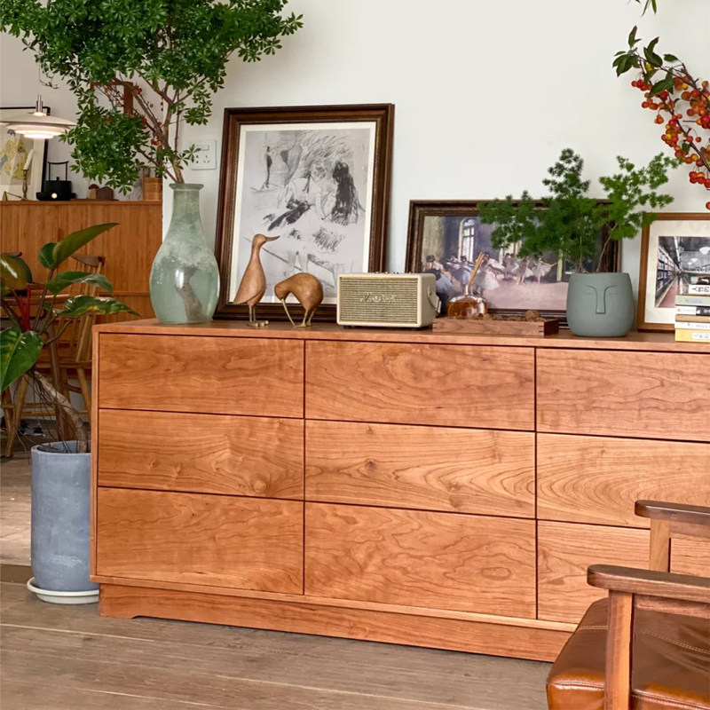 Nordic cherry wood nine drawers bedroom solid wood locker black walnut drawer storage cabinet drawer furniture