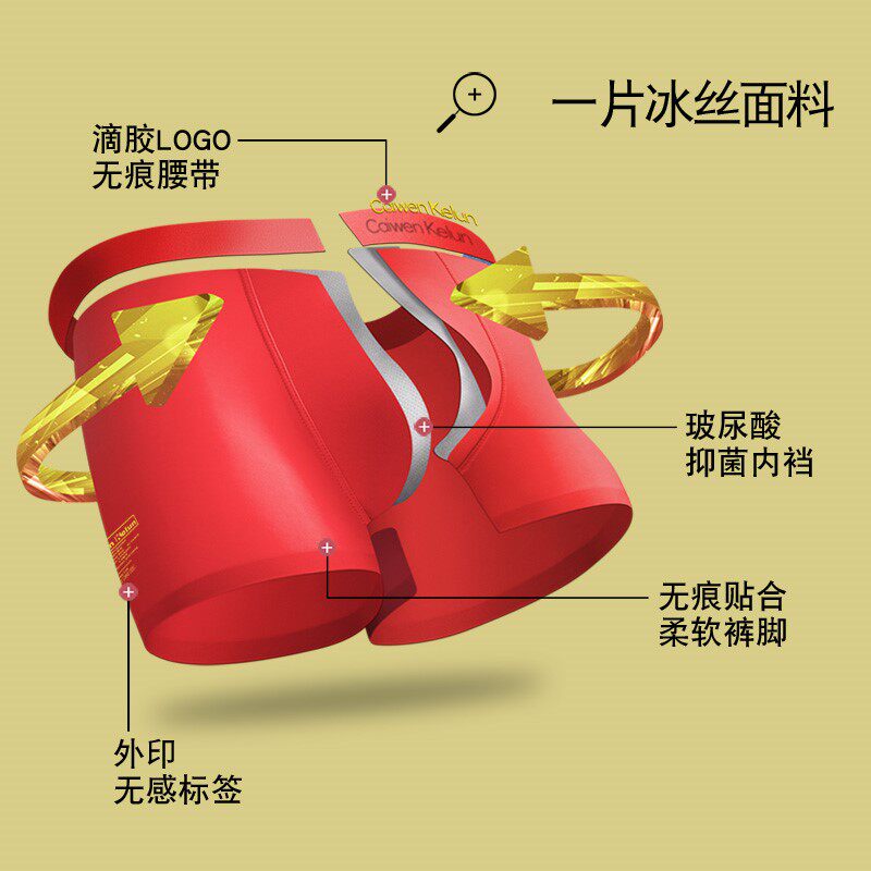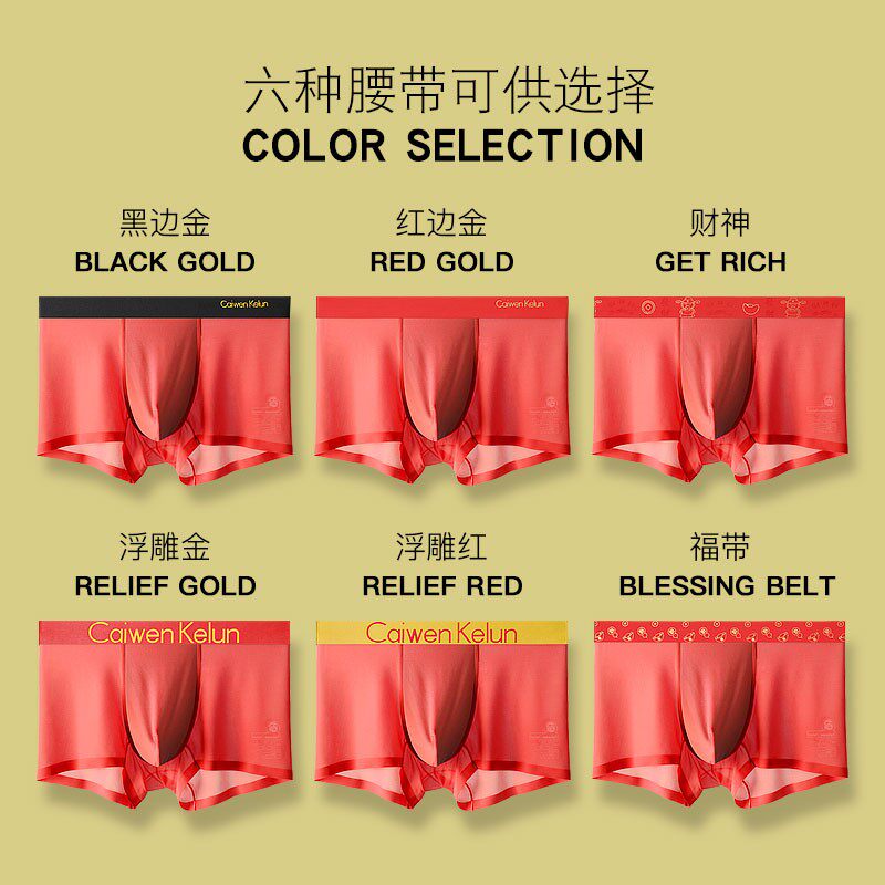 4 Four corner men's underwear Four corners pants Bennary year gift box Large red genera tiger breathable safety pants Ice Silk Head